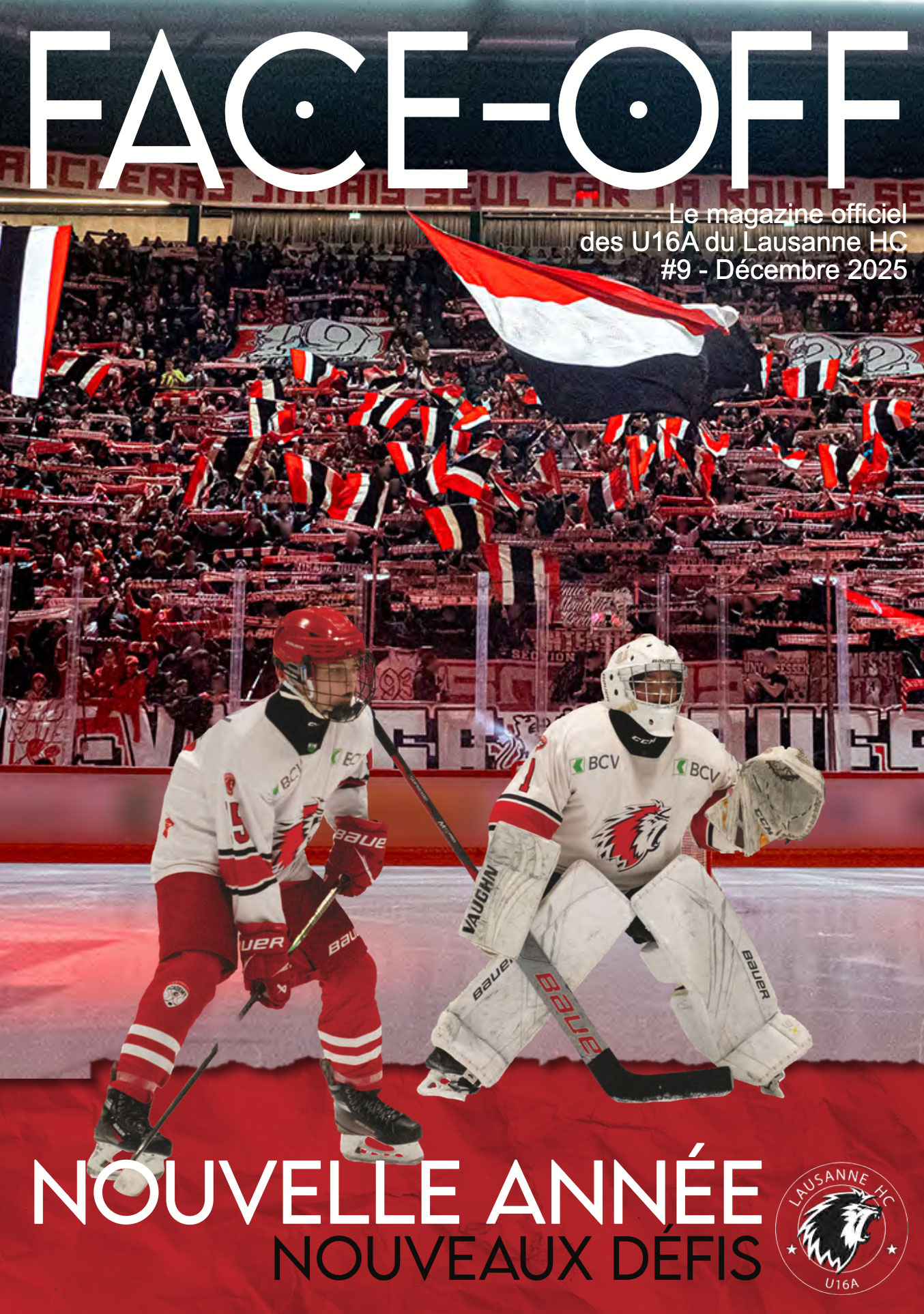 FACE OFF, c’est le fanzine mensuel des U16A de la Lausanne HC Academy. Ce magazine en est à sa deuxième année de parution. Il a débuté lors de la saison 2024/2025. Les catégories juniors étaient alors réparties sur les années impaires, ainsi les U16A actuels étaient les U15A la saison passée. Ne soyez donc pas surpris en parcourant les anciens numéros.